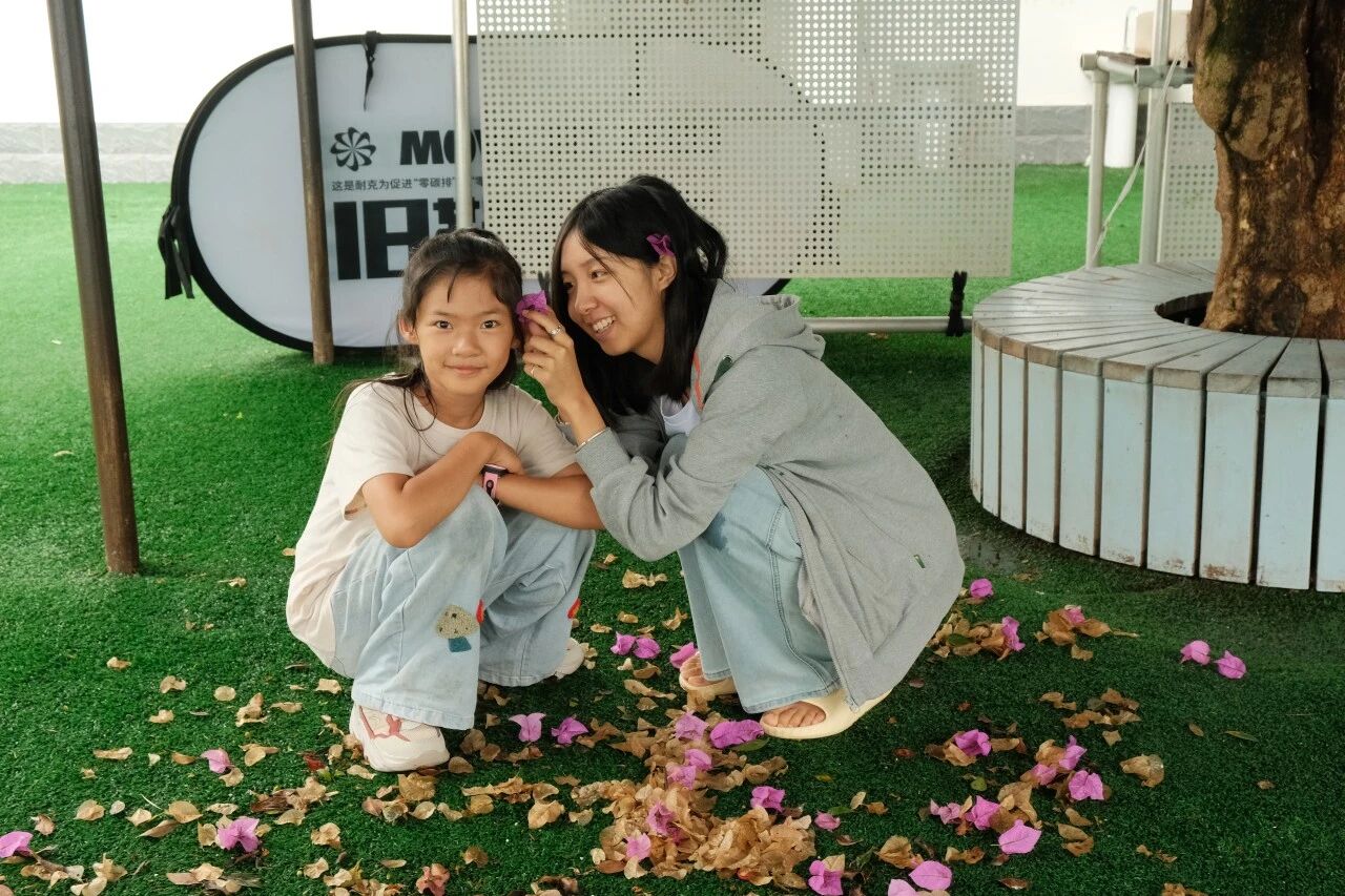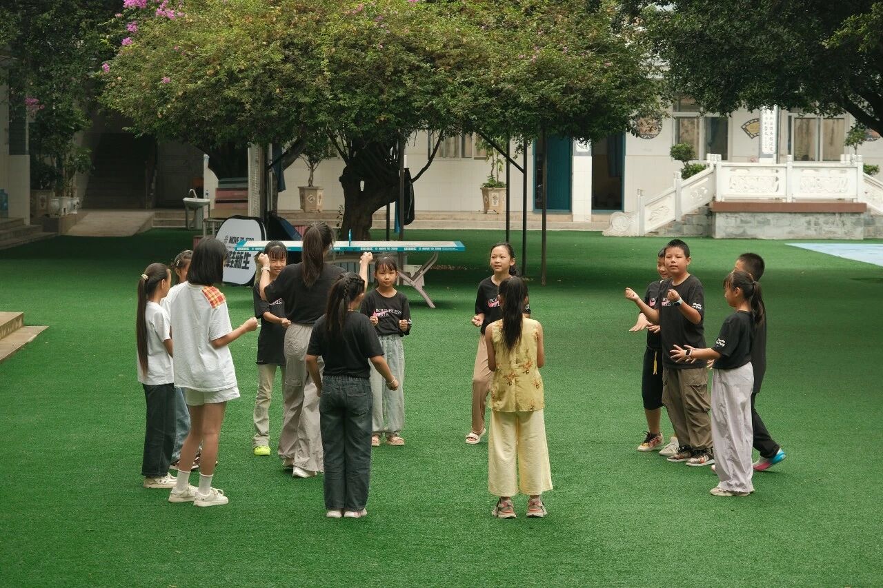 夏令营中,60名三至五年级的小学生,在老师们的课堂教学与互动陪伴中展现出显著成长:从课堂上勇敢举手辩论,到操场上合唱跑调的《晴天》,再到上下学时也会用生态可持续发展的视角探索植物与建筑……他们的自信心与团队意识得以不断提升。