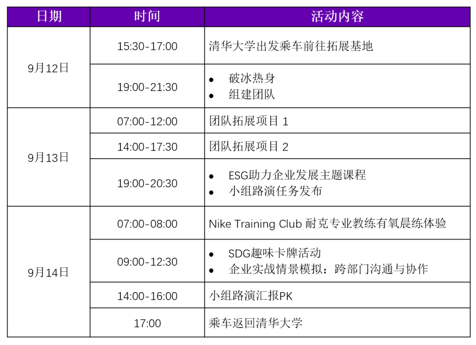 (2)可持续发展领导力拓展营是清华-耐克可持续发展领导力项目的必修环节,2025年仅举办一次。