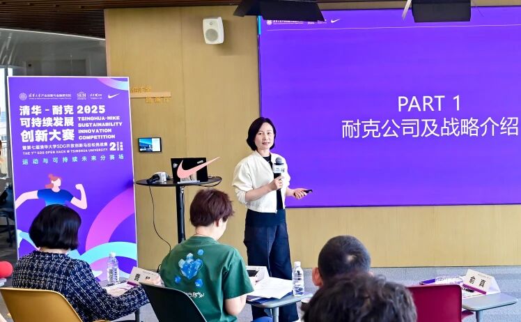 荀多多在致辞中表示,本次清华-耐克可持续发展创新大赛也是清华-耐克可持续发展领导力项目的重要组成部分。大赛依托清华x-lab三创平台,培育学生可持续发展相关的研究和创新项目,促使学生运用创新、系统的思维方法和工具,解决可持续发展的实际问题。大赛吸引了200余名来自22个国家和地区的青年学子,涵盖跨学科、跨院校、跨国家的背景。她期待学生们通过比赛发挥创意,探索“运动与可持续未来”的可能性,同时感谢耐克和各方的支持,鼓励大家在可持续发展的道路上大胆创新。她认为这不仅是一次提升创新与实践能力的机会,更是一次深刻理解可持续发展内涵的旅程。