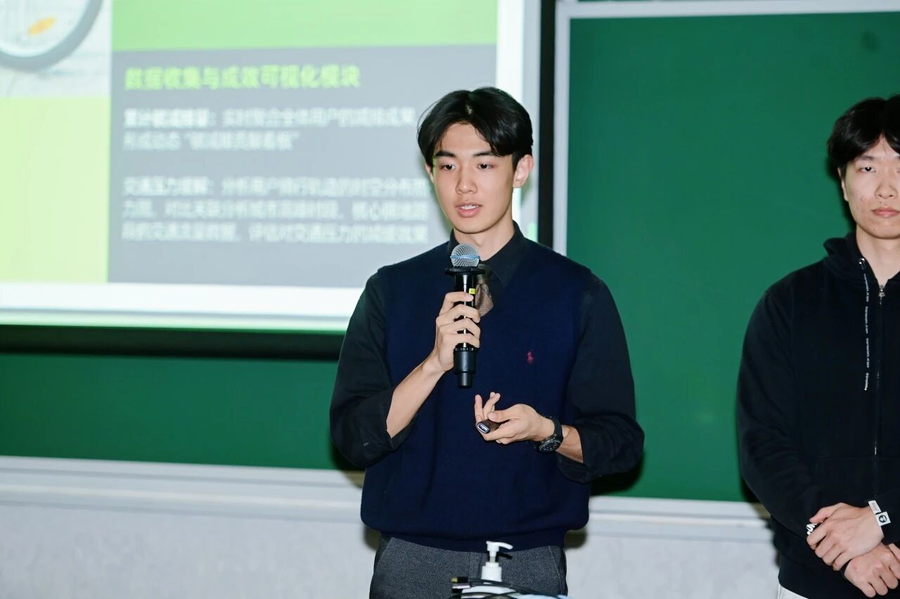 在最终的展示环节,各团队围绕循环经济、低碳生活、校园治理等议题呈现了精彩的创新方案:PLANsPLAN团队敏锐捕捉到耐克循环体系中“情感价值”的断点,提出利用AI识别旧衣并生成个性化改造方案,以情感驱动用户参与回收;“造纸术重生计划”团队立足校园废纸回收这一身边小事,设计了一套以学生参与为核心的可持续行动机制;SwapCycle团队则聚焦校园闲置物品流转,构建了严密的校内循环交易平台逻辑,并现场演示了产品DEMO。