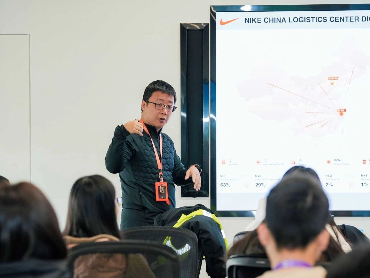 在耐克中国物流中心参观环节,学生们见证了智能仓储技术的创新应用,不仅直观感受到耐克在物流领域的技术创新,更意识到真正的竞争力不再单纯依赖速度与成本,而在于能否构建技术驱动、责任导向的智慧物流体系。