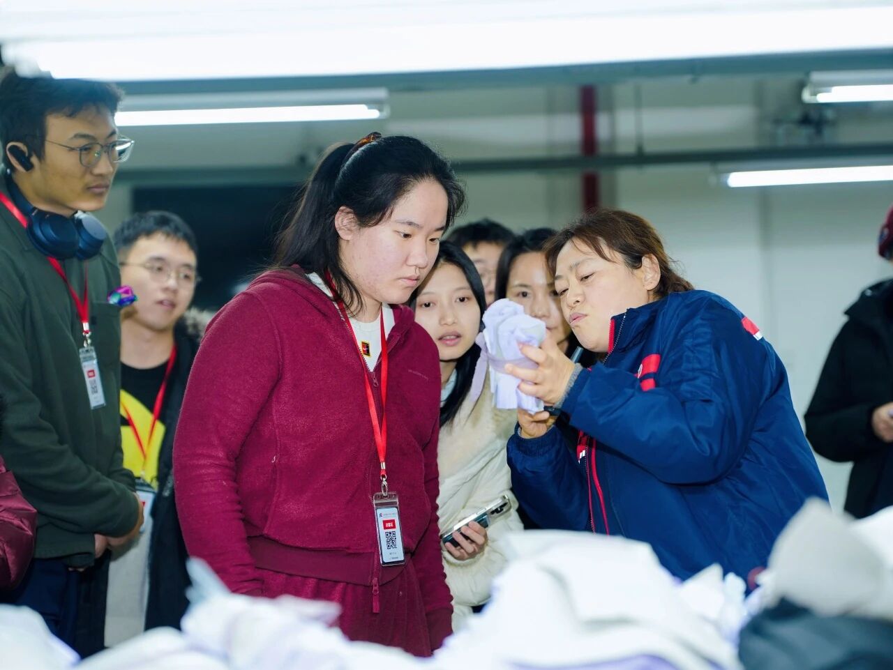 在远东服装参访中,同学们全面了解了纺织服装行业从“一根线”到“一件成衣”的可持续转型路径。通过走访 T1 与 T2 工厂,同学们近距离观察了裁剪、机缝、绿色面料研发、染色定型及射频识别技术智能化仓储的全流程。远东服装“上下游可追溯”的供应链体系及精益生产模式,让学生们体会到传统制造业在数字化与低碳化双轮驱动下的变革潜力。