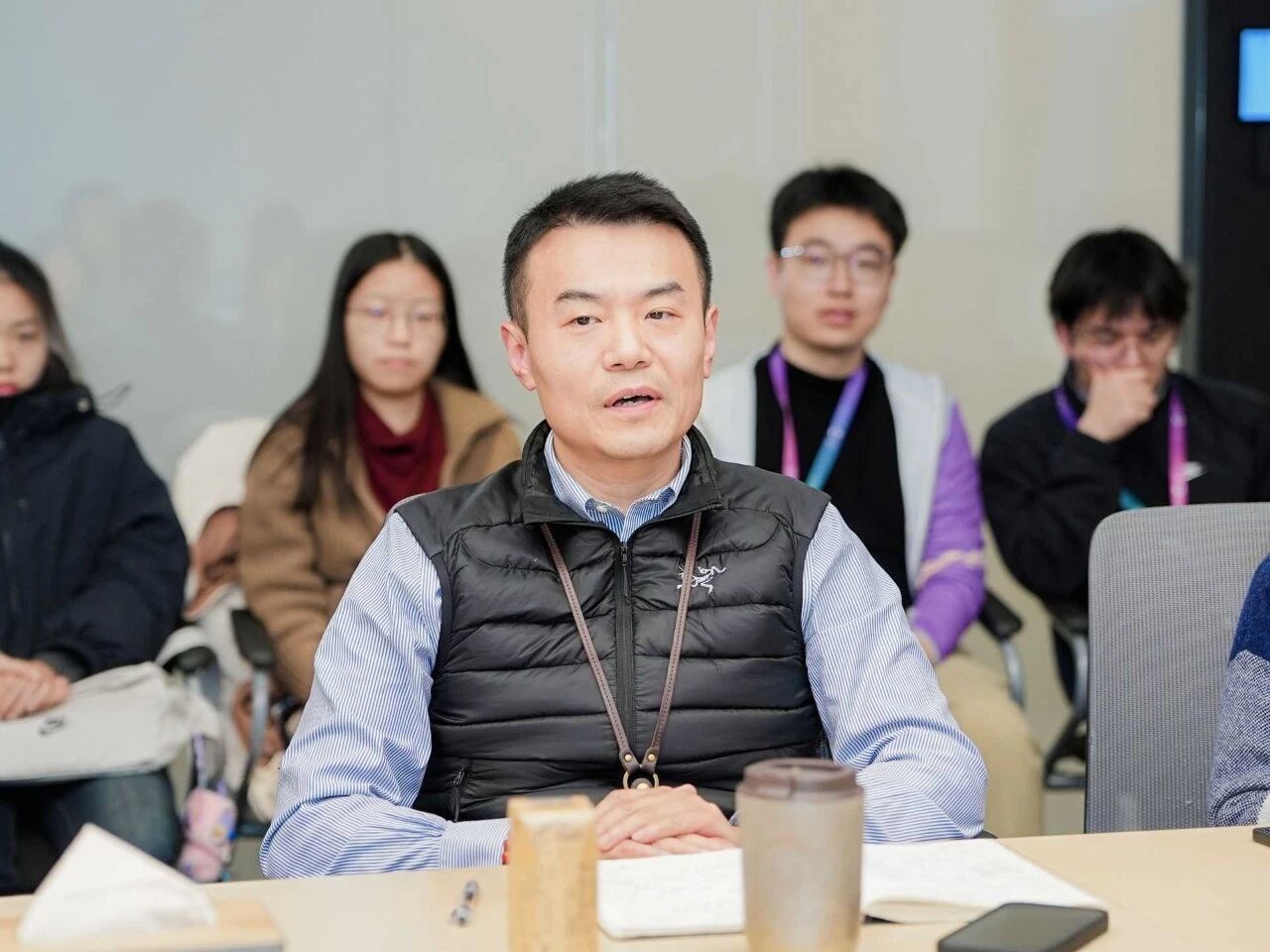 针对分布式风力发电等减碳项目的具体应用,同学们走进远景科技集团,深入探讨绿色能源的系统化方案。远景代表为学生介绍了远景在零碳领域的创新,展示了其在智慧风电、储能系统及零碳产业园方面的布局。通过与企业专家的交流,学生们深入理解了绿色能源技术如何为传统高耗能行业提供脱碳解决方案,以及“能源物联网”在构建未来零碳社会中的核心作用。在交流环节,学生们与企业代表围绕全球能源转型、零碳技术标准及数智化赋能等前沿话题展开讨论,在思辨中加深了对新能源产业复杂性与技术逻辑的认识。
