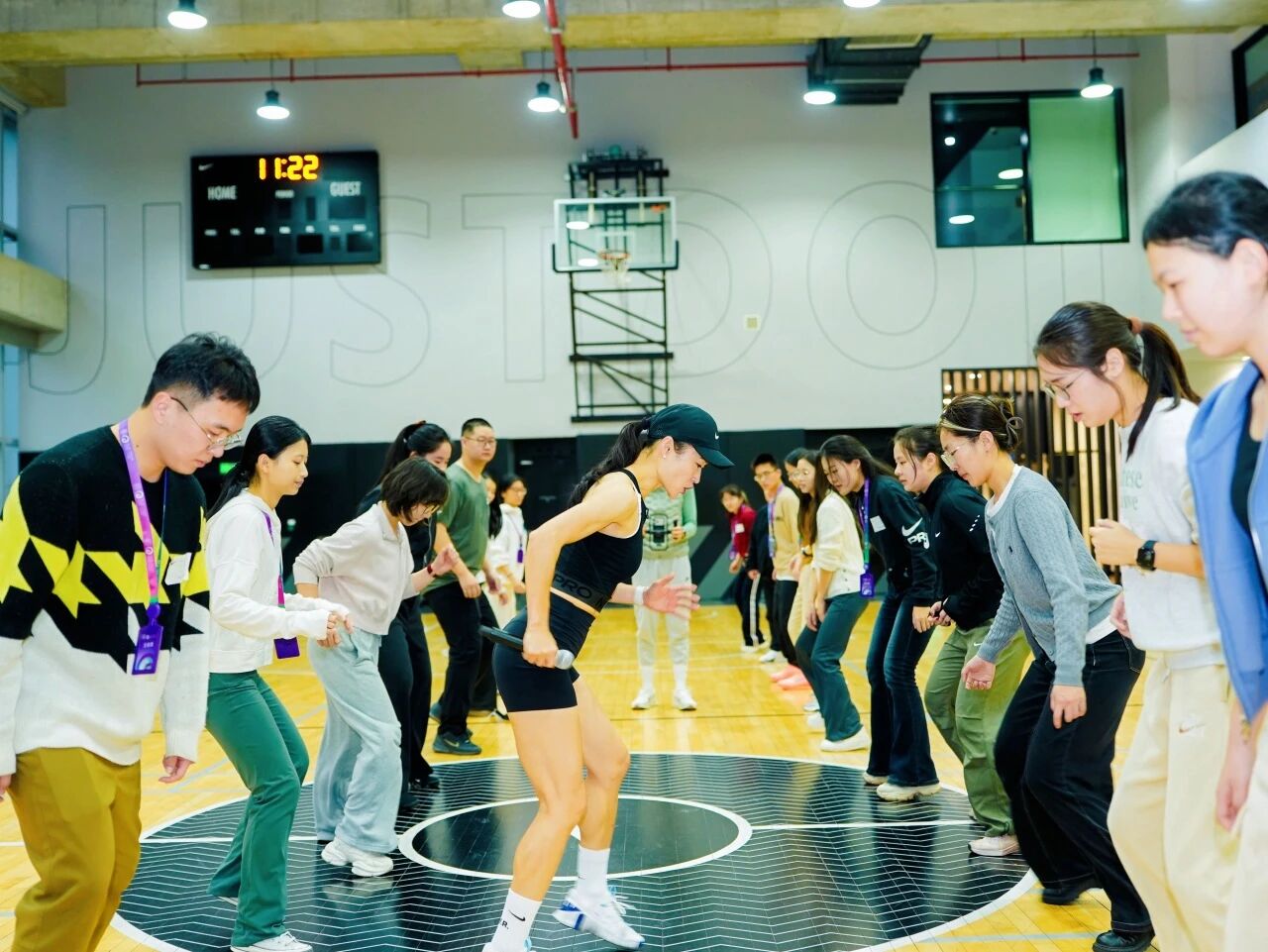 在耐克大中华区总部园区参观中,高度融合的可持续设计细节给同学们留下深刻印象,特别是获得LEED金级认证的“易建联楼”。同学们还在耐克训练中心专业运动教练的带领下进行了有氧运动训练,以实际行动践行“为祖国健康工作五十年”。