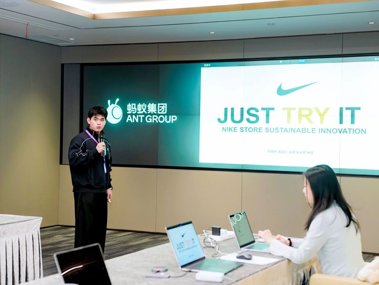 在最终的小组汇报环节,同学们打破学科壁垒,以“企业负责人”的身份就企业实际面临的可持续发展挑战提出了兼具商业可行性与社会价值的行动提案 。从成衣工厂一线的绿色生产降耗措施,到巧妙融合耐克零售门店场景的能量回收系统,再到充满人文关怀的“旧杯新生”、“旧鞋盒新生”等废旧产品回收计划,七大方案不仅覆盖了产业链的各个环节,更精准切中了企业在绿色转型中的痛点与机会,展现了本次课程激发的可持续发展商业创意。