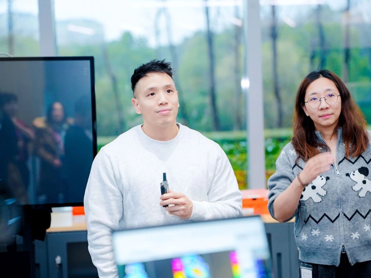 随后,同学们深入调研了耐克在研发创新与本土化运营方面的实践路径。在探索耐克运动研究实验室(Nike Sport Research Lab)过程中,同学们实地体验了足压测试与步态分析,近距离观察运动科学数据如何转化为提升运动表现的创新产品,并了解了耐克如何将可持续理念融入产品设计的源头,通过材料创新与数字化设计减少碳足迹,生动诠释了创新是可持续发展的源动力。